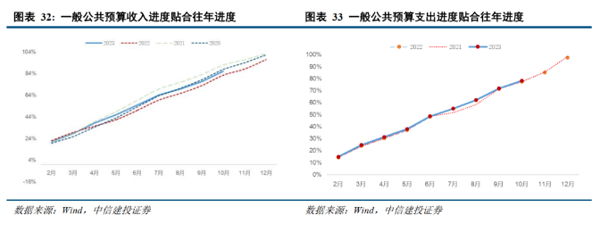 (一)财政政策加码扩张,稳增长与防风险并重成为下一阶段主旋律2023年开年伊始,财政面临着紧平衡的压力,两会定下的财政政策基本符合预期。由于2022年的财政收入预算执行情况低于预期,2022年广义财政中的一般公共预算完成度不足100%,期待大额跨年资金结转并不现实,央行资产负债表的其他负债项降至低点意味着2023年可上缴利润空间同步压缩,国有企业利润上缴也基本完毕。因此,2023年开年可以用于周转的财政资源与疫情前几年相比绝对量已大幅下降,而年初依然面临稳增长、防疫情、保民生等多重压力,财政的收支紧平衡问题较为严峻。年初两会期间,“预算赤字率3%、新增专项债额度3.8万亿”的政策组合基本符合预期,市场也普遍预期今年的财政基调与经济复苏相一致,基本维持“均值回归”的特征。