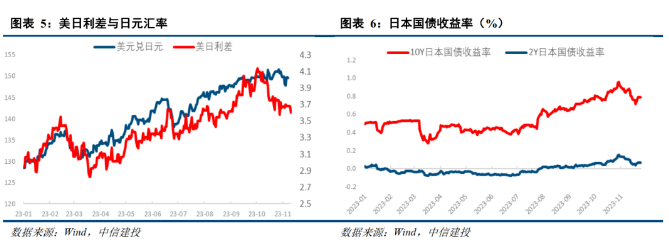 日央行货币政策紧缩节奏加快。日元汇率贬值趋势难抑,持续跌破1美元兑150日元大关,持续贬值压力推高进口成本,促使央行加快货币政策正常化进程。2023下半年,日央行已经基本解除了通过收益率曲线控制对长端利率的压制。日元持续疲软引发市场对日本政府再度干预汇率的猜测。展望2024,随着联储加息结束和降息预期上升,日本货币政策正常化继续演进,下一步,预计日本央行将继续推进货币政策正常化,2024年可能采取的政策措施有二:一是调整2%的通胀目标表述;二是短端政策利率放弃-0.1%的负利率目标。同时,日元有望高位企稳并逐渐回升。