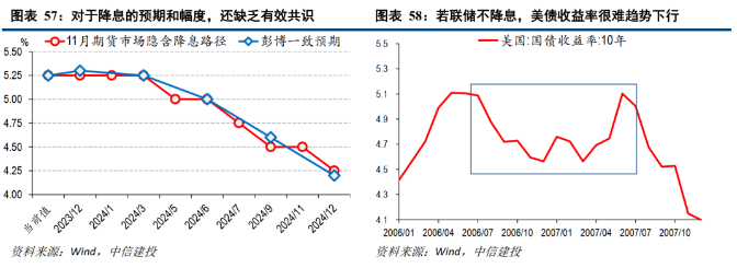此前类似的高利率历史环境,美债波动较大但趋势机会有限。2006-2007年类似的高基准利率环境下,10年美债利率虽然阶段性下行,但迅速反弹,后期在危机出现、美联储开始降息后,长端利率才出现再度下行。