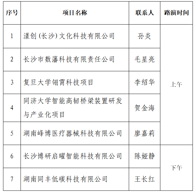 (每个项目路演展示8分钟,交流答疑3分钟)