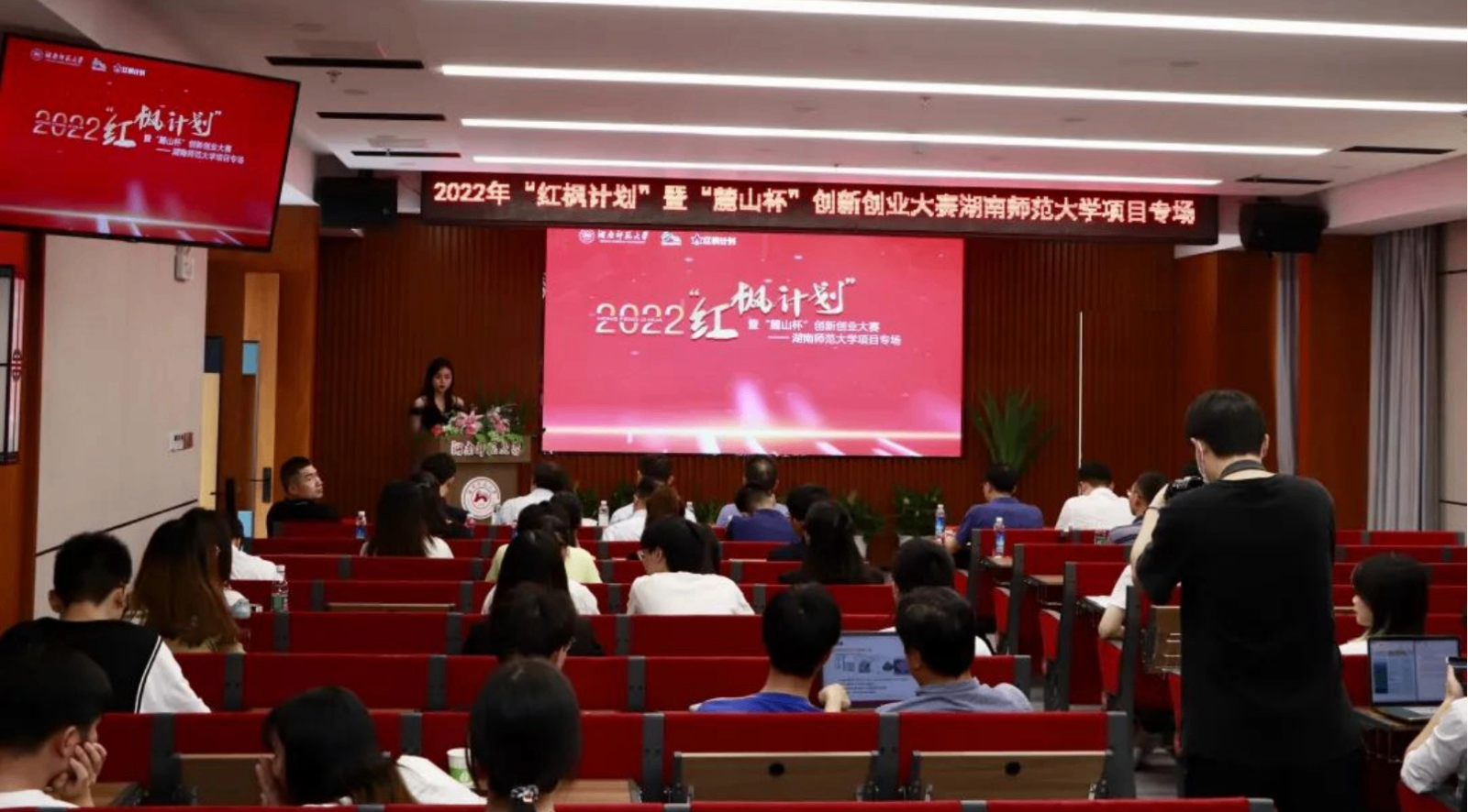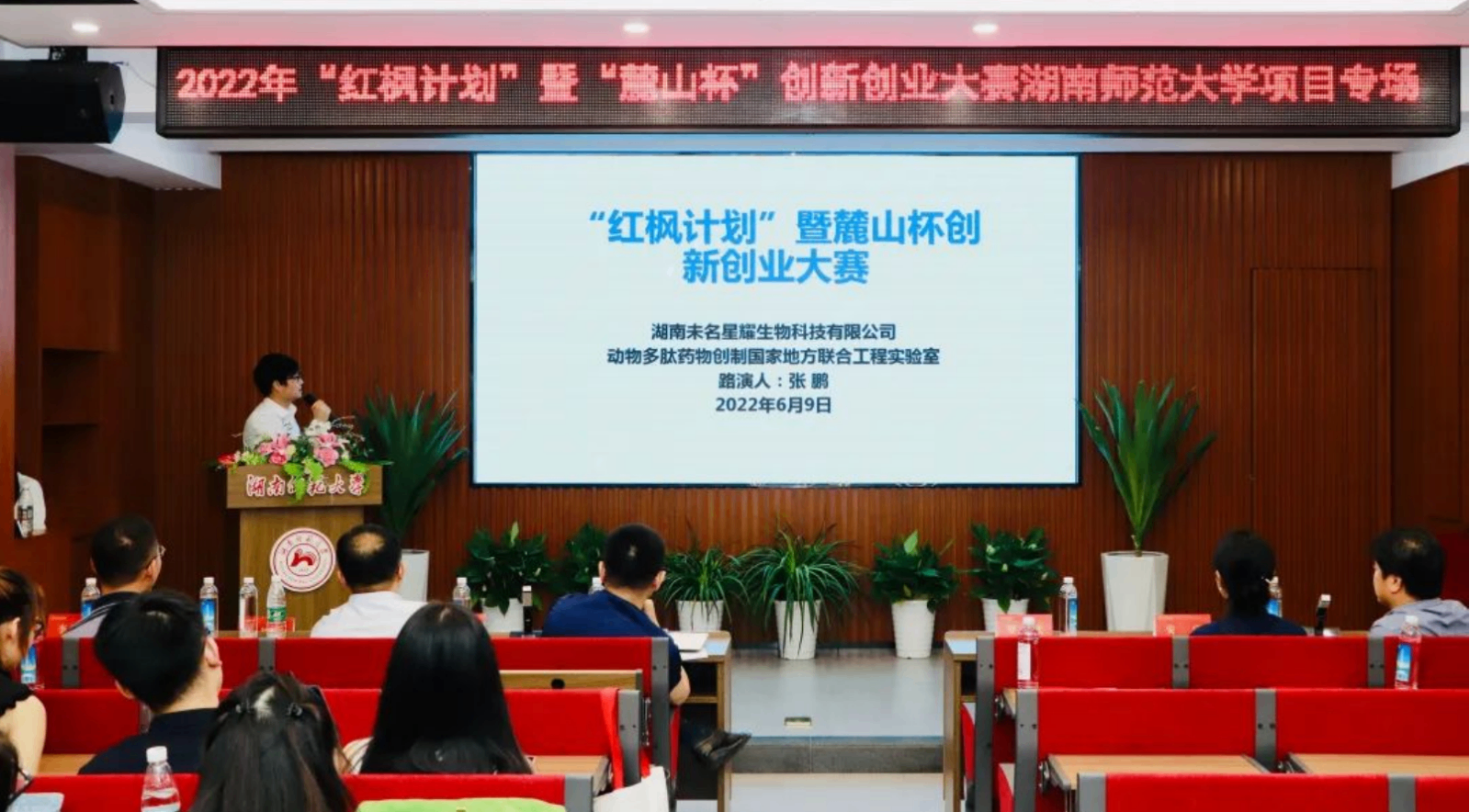△6月10日下午,岳麓山大学科技城2022年“红枫计划”暨“麓山杯”创新创业大赛湖南师范大学项目专场举行。